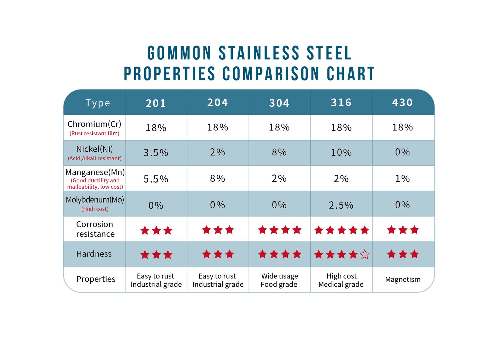 304 and 316 are both sanitary grade stainless steels, and there is no obvious difference in daily use 201, 304, and 316 are austenitic stainless steels, which are non-magnetic, and some are weak magnetic because of the appearance of a small amount of martensite or ferrite in the austenite due to component segregation or improper heat treatment during smelting.