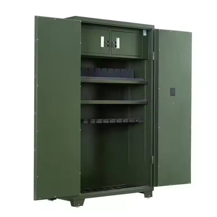 Secure Ammo Storage Cabinet with Adjustable Shelves and Locking Mechanism